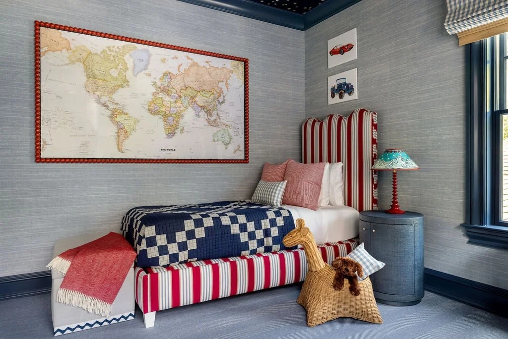 This 9,000 square foot Greenwich home was a gut renovation project for a young family with four children, three dogs, and lots of personality. Merging the husband’s preference for preppy and polished sensibilities with the wife’s penchant for color and pattern was the creative brief, anchored by the goal of ensuring the home was, first and foremost, functional and smartly planned for their lively family.